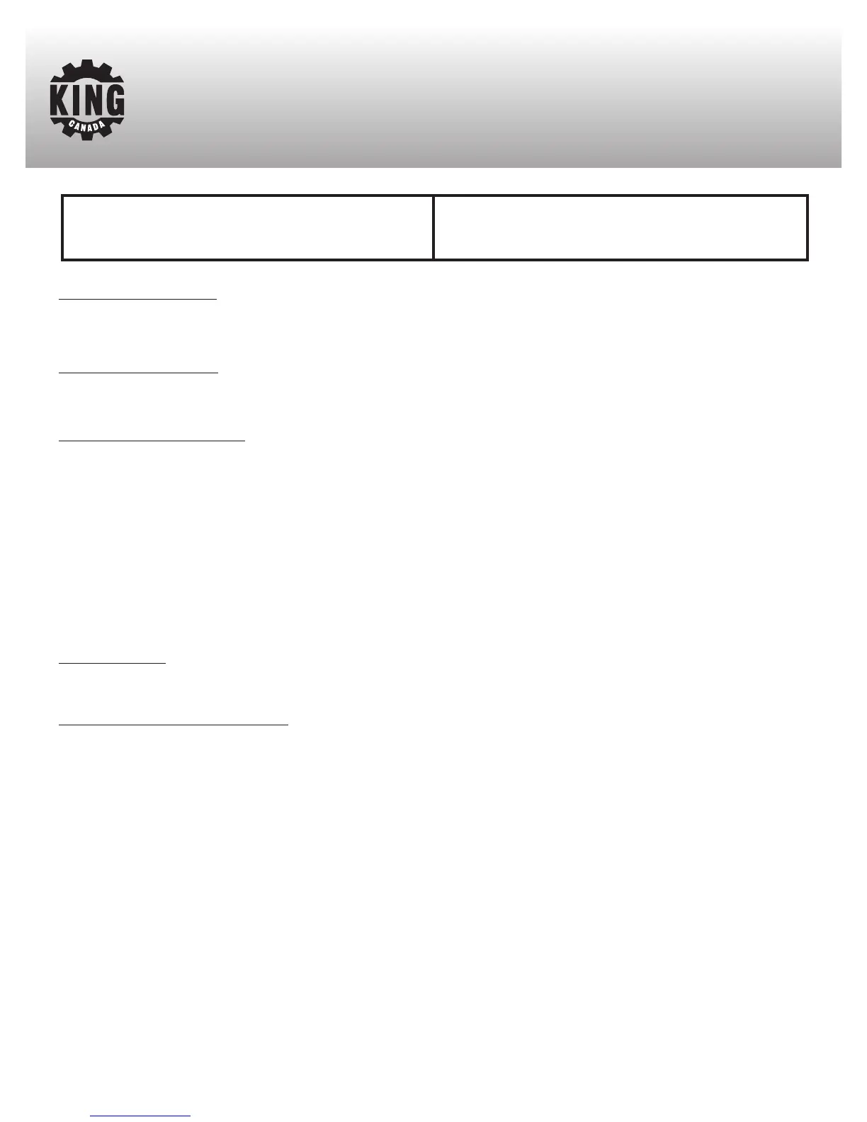 authorized King Canada service center. Contact your retailer or visit our web site at www.kingcanada.com for an updated listing of our