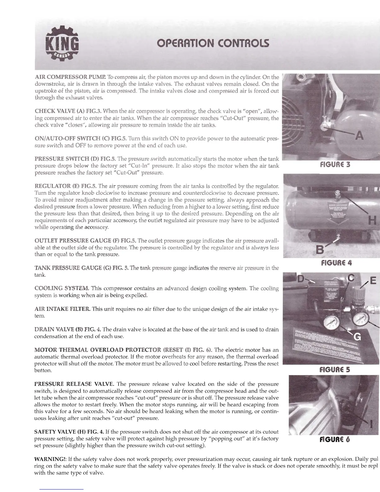 King Canada 8469 - Operation Controls; Air Compressor Pump Function; Check Valve Operation; On;Auto-Off Switch Function