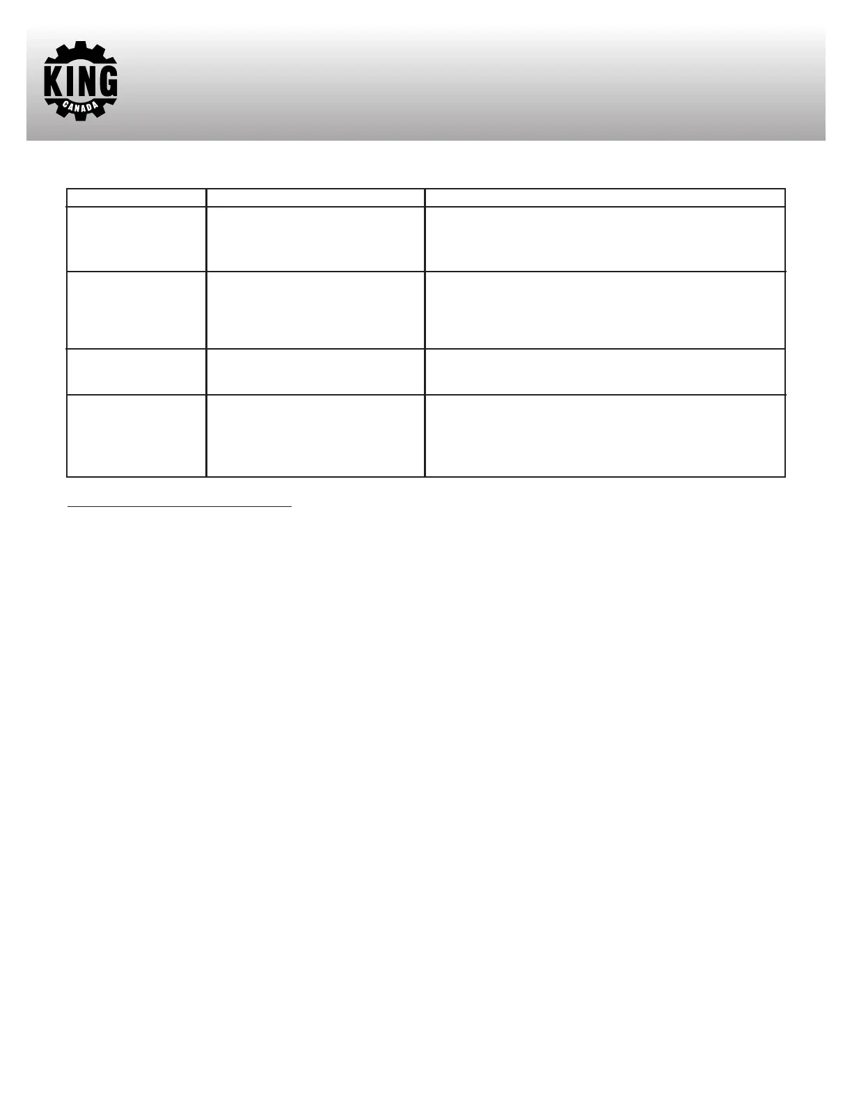 Refer to the Parts section of the King Canada web site for the most updated parts diagram and parts list.