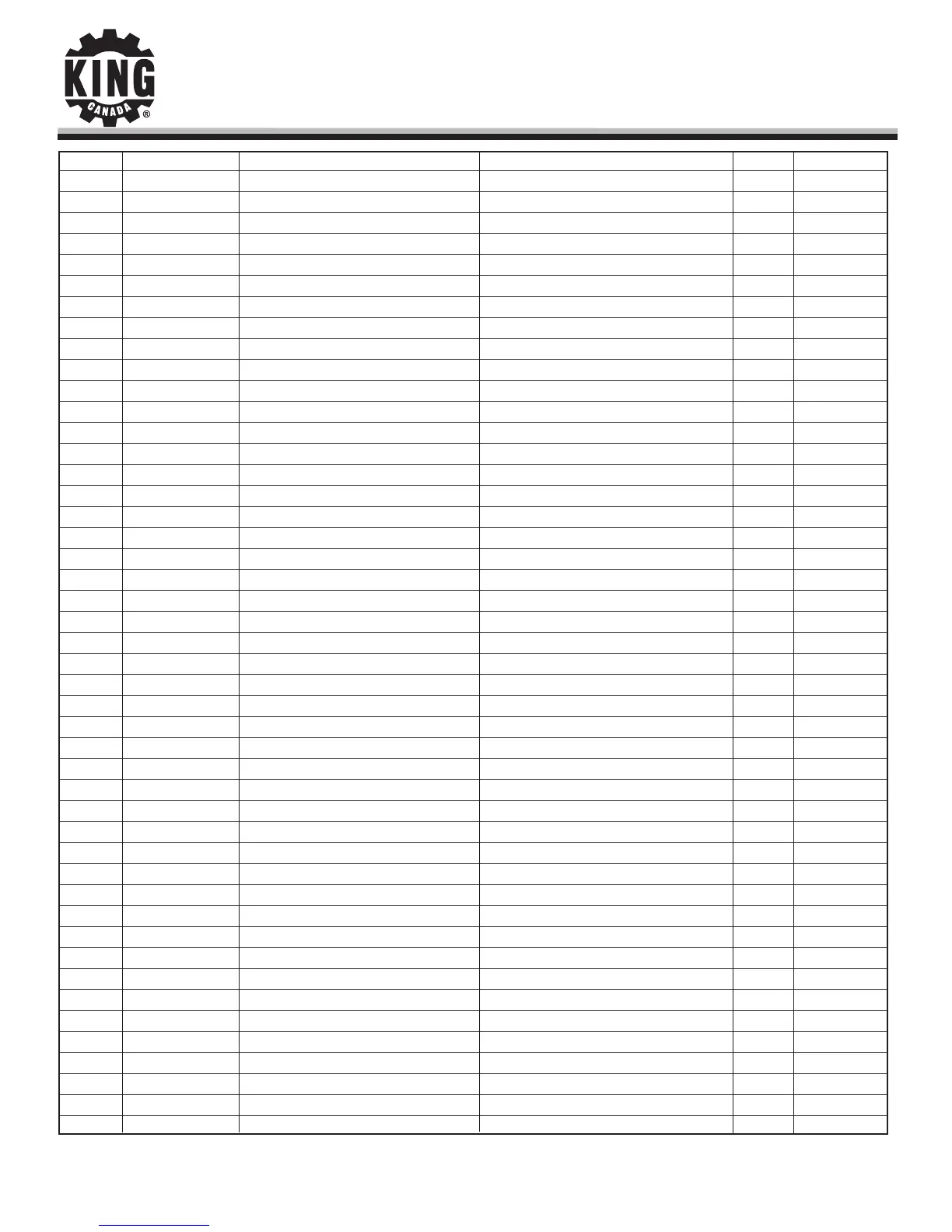 Parts Pricing List / Liste de Prix des Pièces