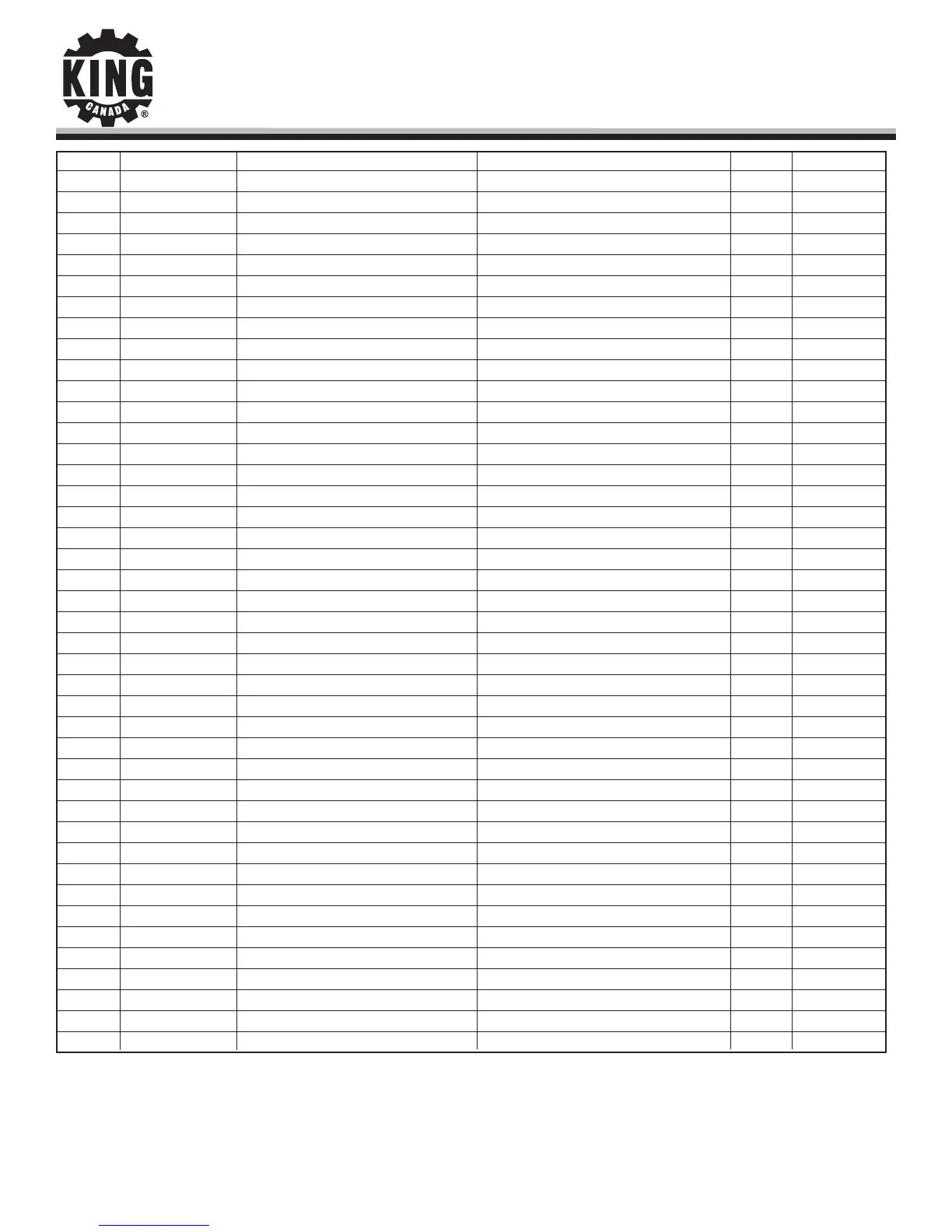 Parts Pricing List / Liste de Prix des Pièces