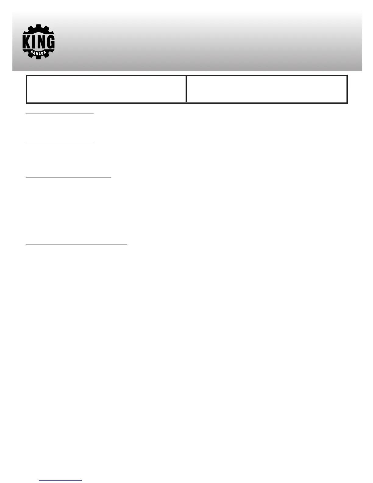KING CANADA makes every effort to ensure that this product meets high quality and durability standards. KING CANADA warrants
