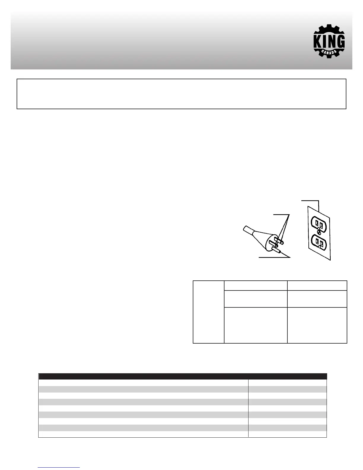 Wire Gauge) extension cord. Use only extension cords which accept