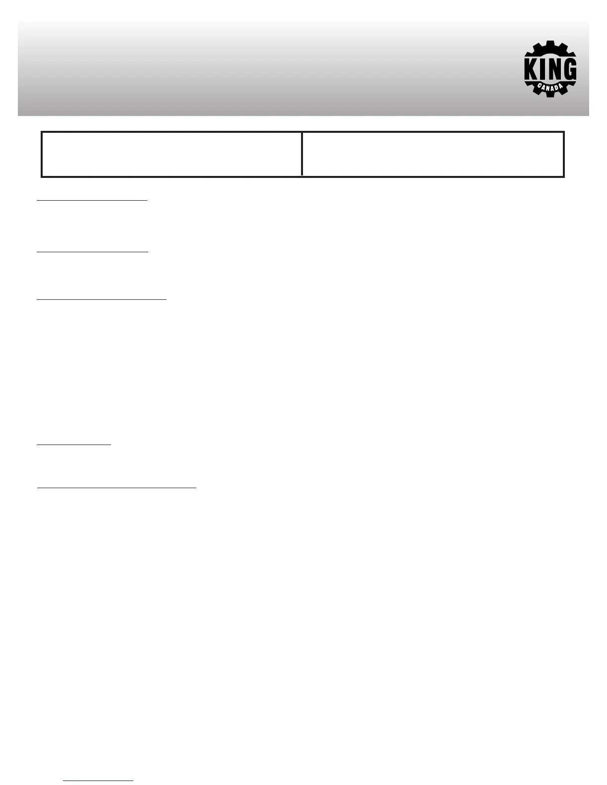 King Canada service center. Contact your retailer or visit our web site at www.kingcanada.com for an updated listing of our authorized