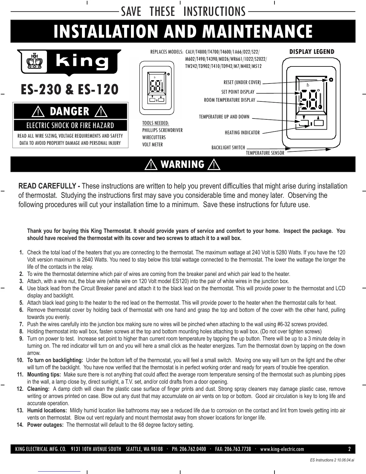 KING ELECTRICAL MFG. CO. 9131 10TH AVENUE SOUTH SEATTLE, WA 98108 · PH: 206.762.0400 · FAX: 206.763.7738 · www.king-electric.com 2