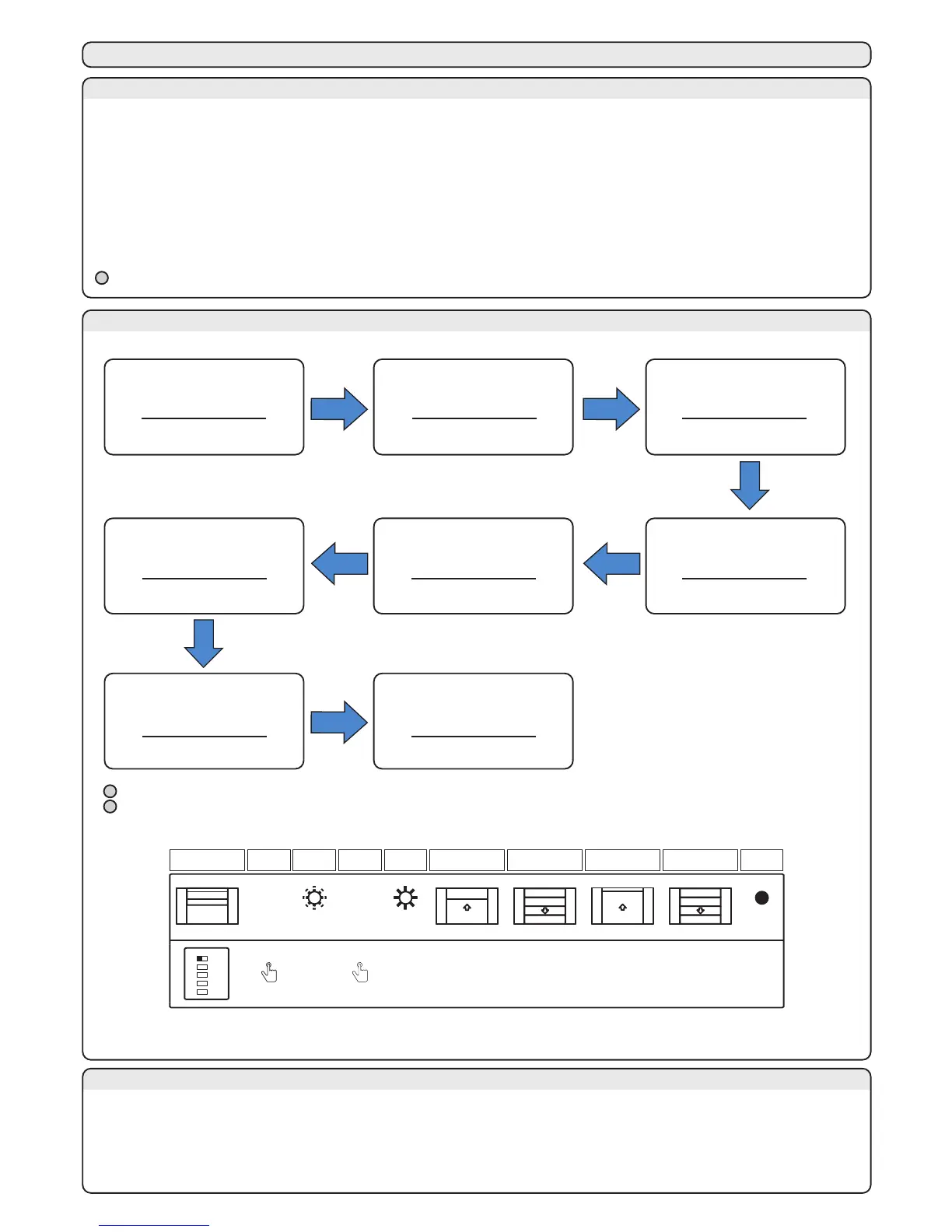 The control unit is programmed by the buttons, and the control unit status is shown during the programming procedure by the