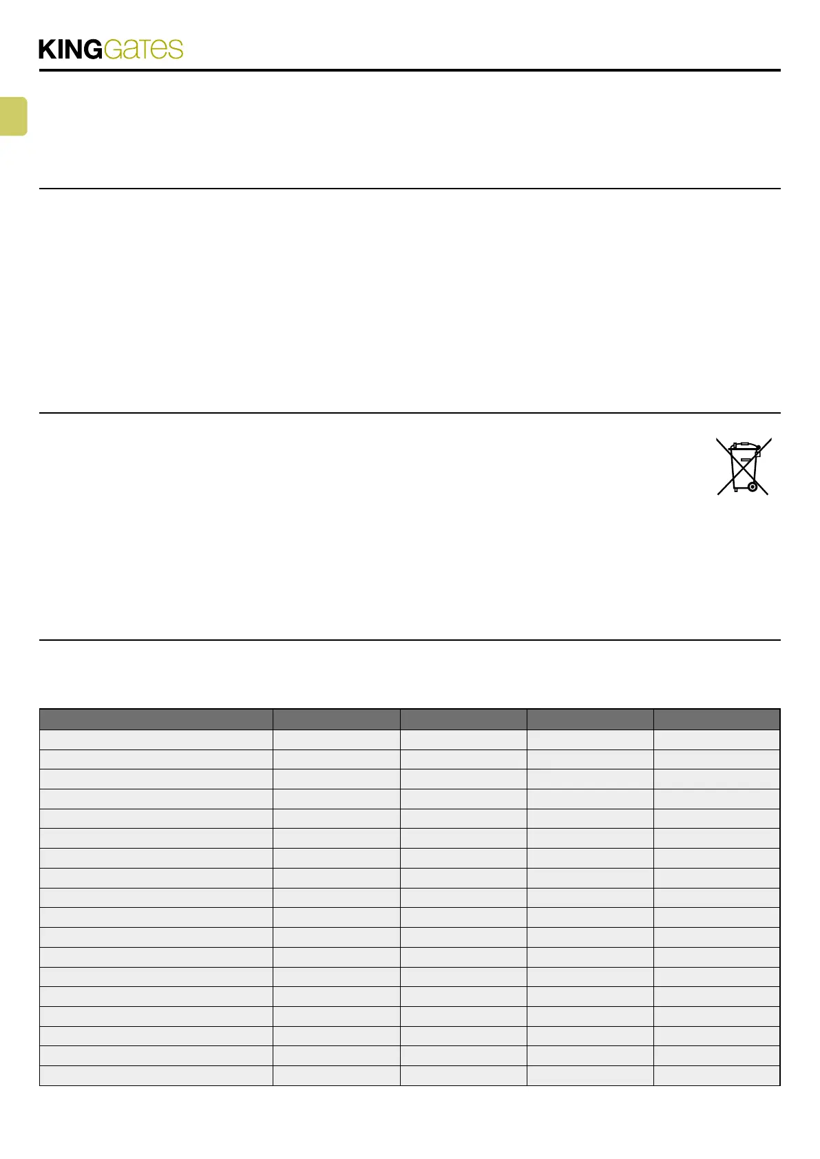 ADVERTÊNCIAS: • Todas as especificações técnicas nesta secção referem-se a uma temperatura ambiente de 20ºC (+/- 5º) KING
