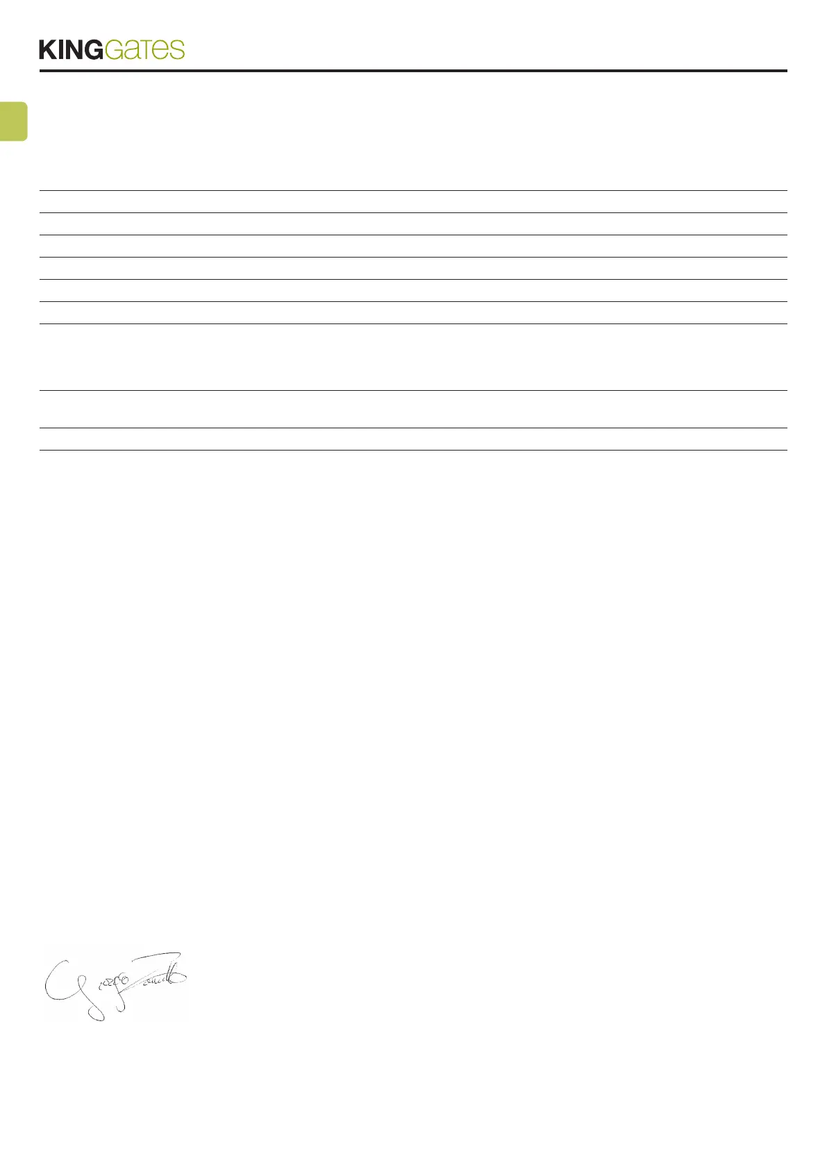 Persona autorizzata a costituire la documentazione tecnica: KING GATES S.r.l.