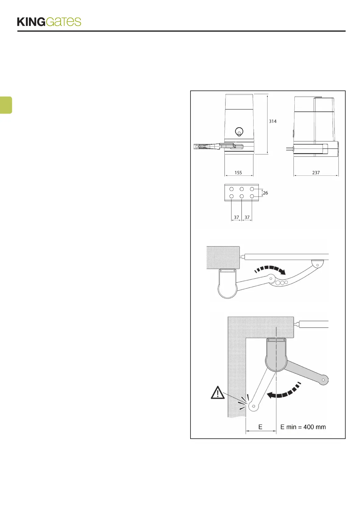 • Stellen Sie sicher, dass der Raum um den Getriebemotor