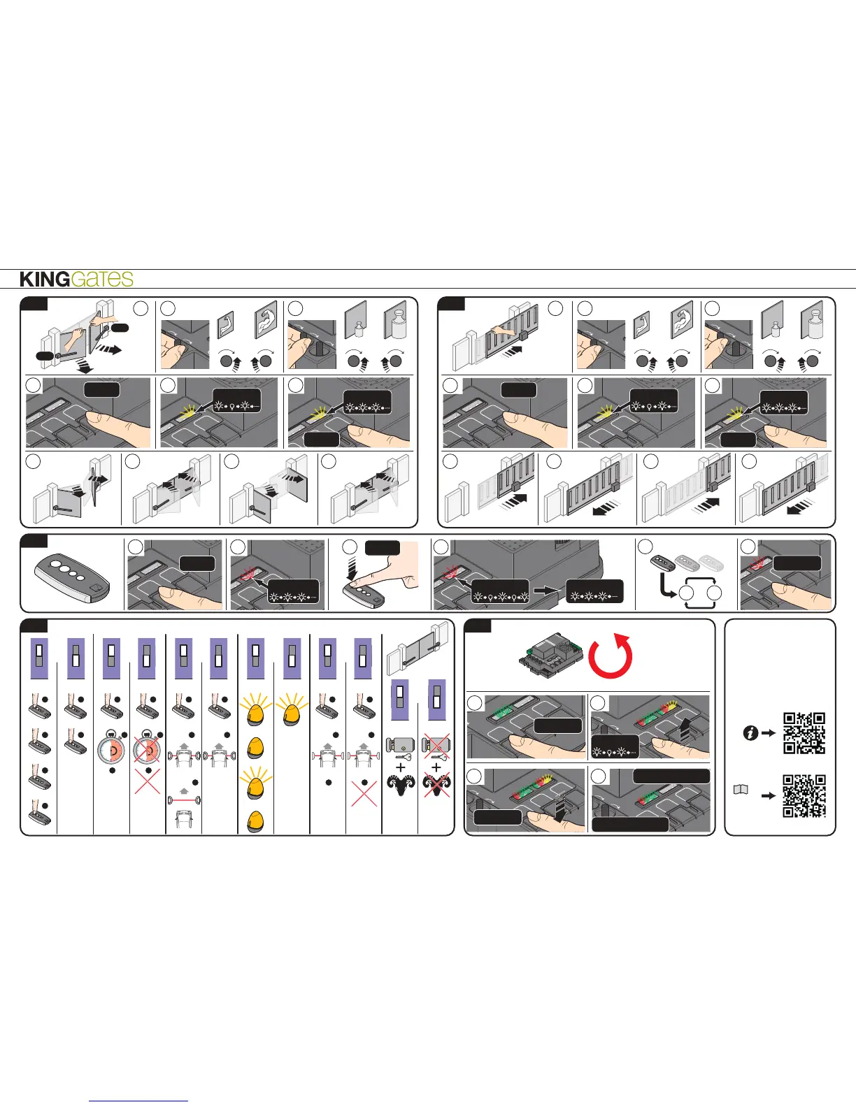 King gates STARG8 AC - 4 A Operation Sequence; 4 B Operation Sequence; 5 Remote Control and Dip-Switch Configuration; 6 Dip-Switch Functions Overview
