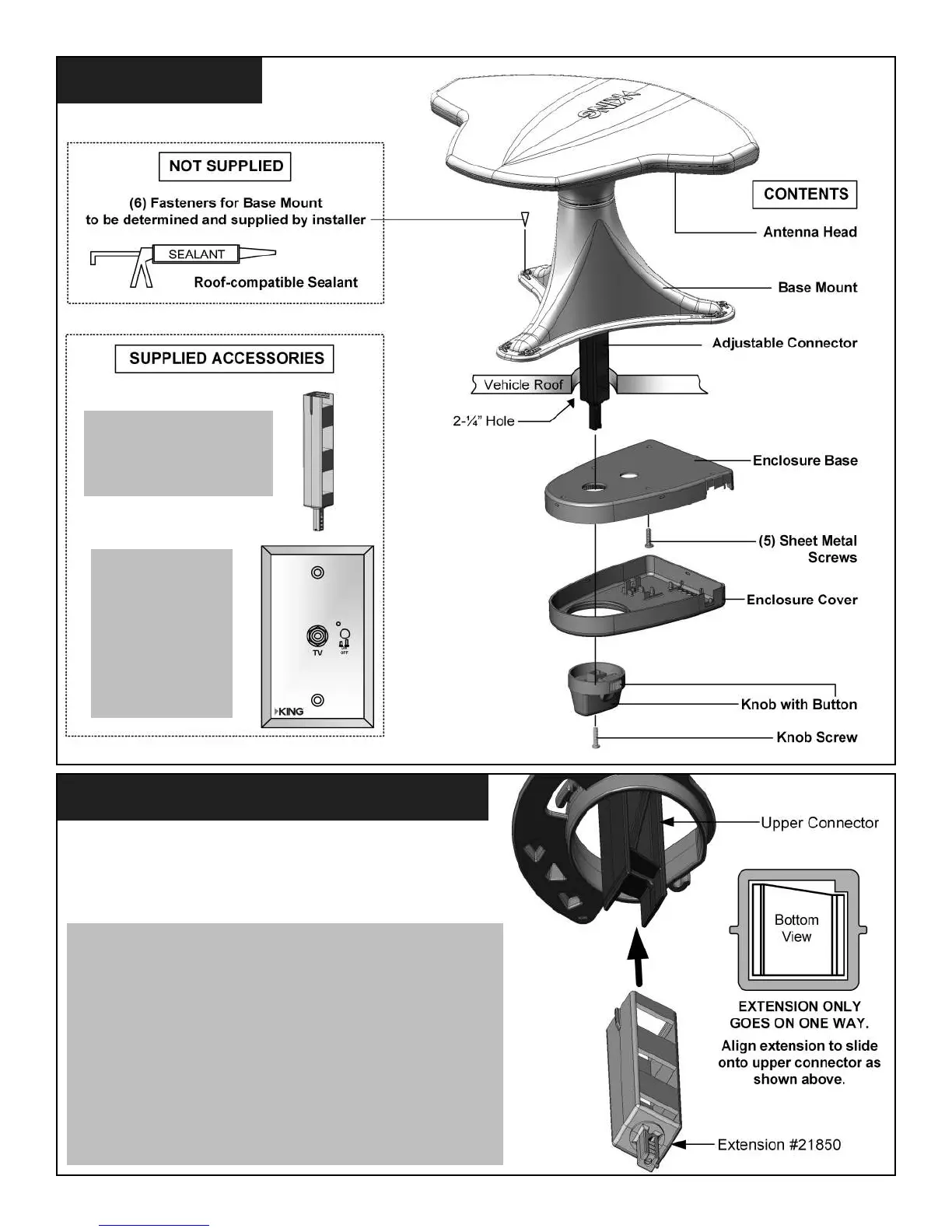 • Extension only ts onto upper connector one way. Line up