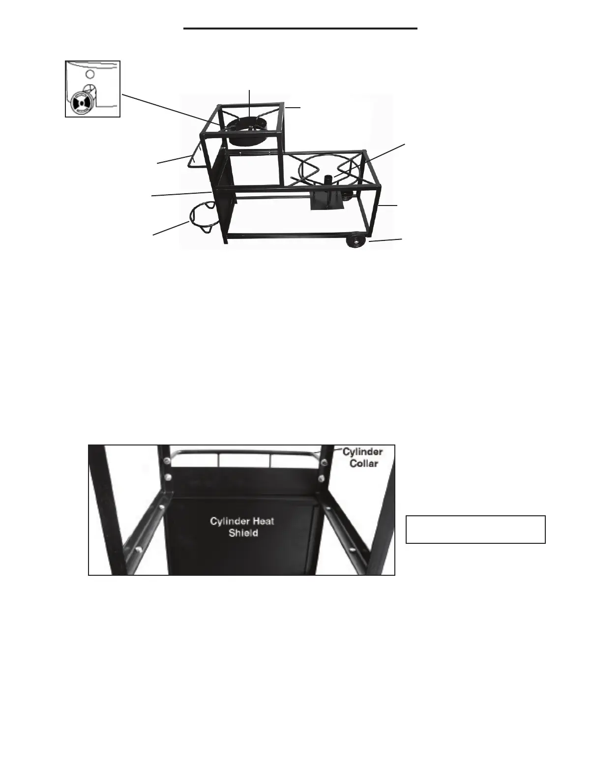 4. Insert threaded ends of cylinder collar into holes located on top frame as pictured (the two tabs