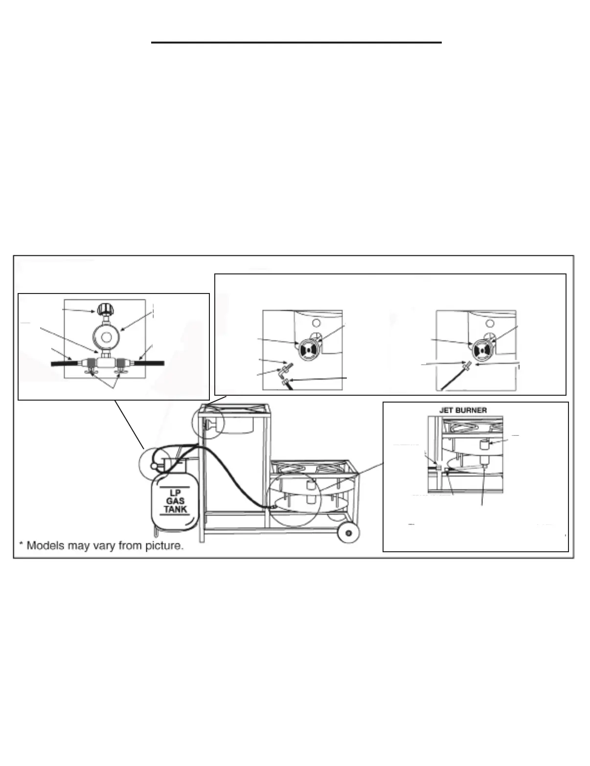 2. The hose to burner (brass adapter) connections must be tightened and leak tested.