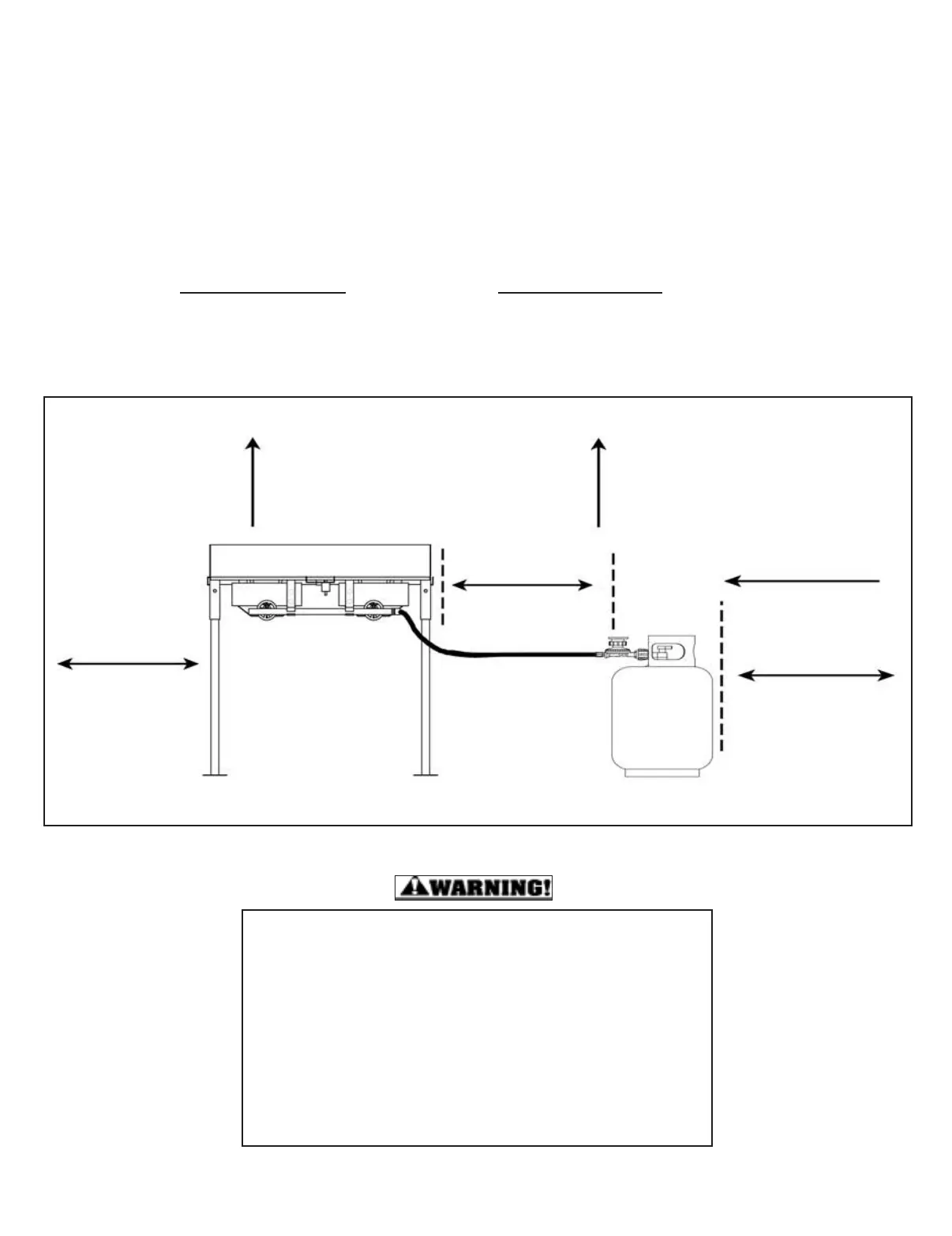 3. Keep 24” (.61m) of space between the LP gas cylinder and the appliance.