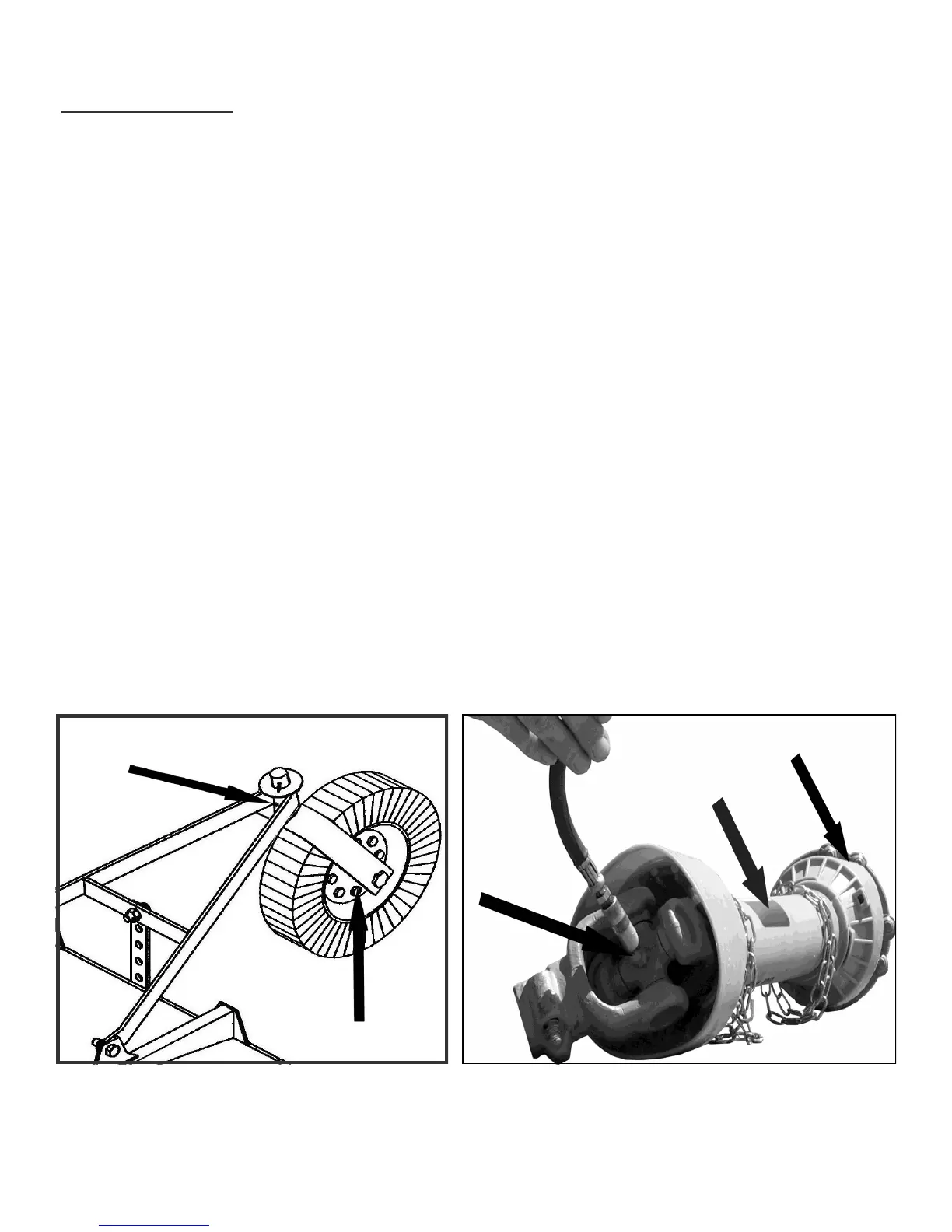 2). Every 8 hours, wheel fork (s), wheel hub (s), PTO shaft universal joints (2), and