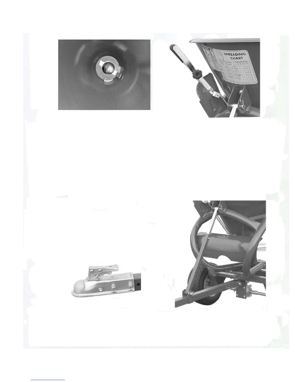 bottom, through locking devices operated by levers. The fertilzer spreader and