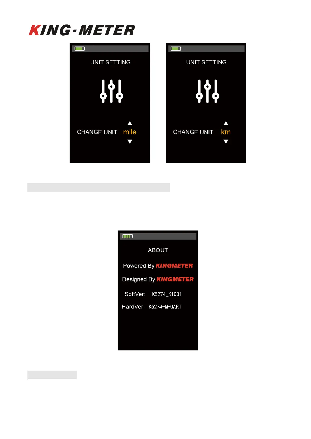 Short press “MODE” button to enter the “About” interface, this interface shows manufacturer’s name,