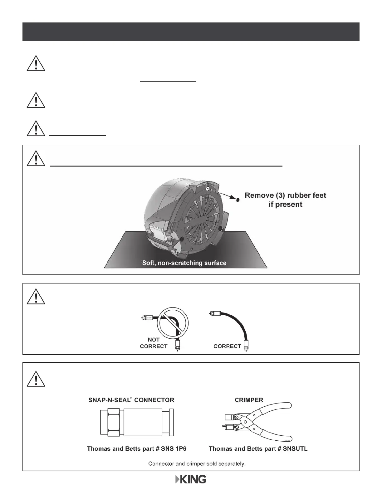 DO NOT INSTALL UNIT ON ROOF WITH RUBBER FEET IN PLACE.