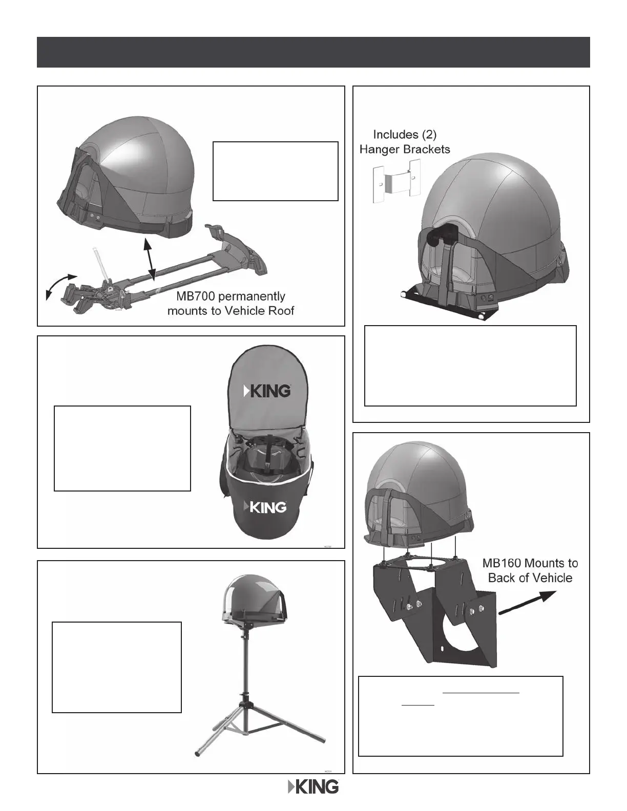 ACCESSORIES (Sold separately - see the satellite antenna accessories page at kingconnect.com)