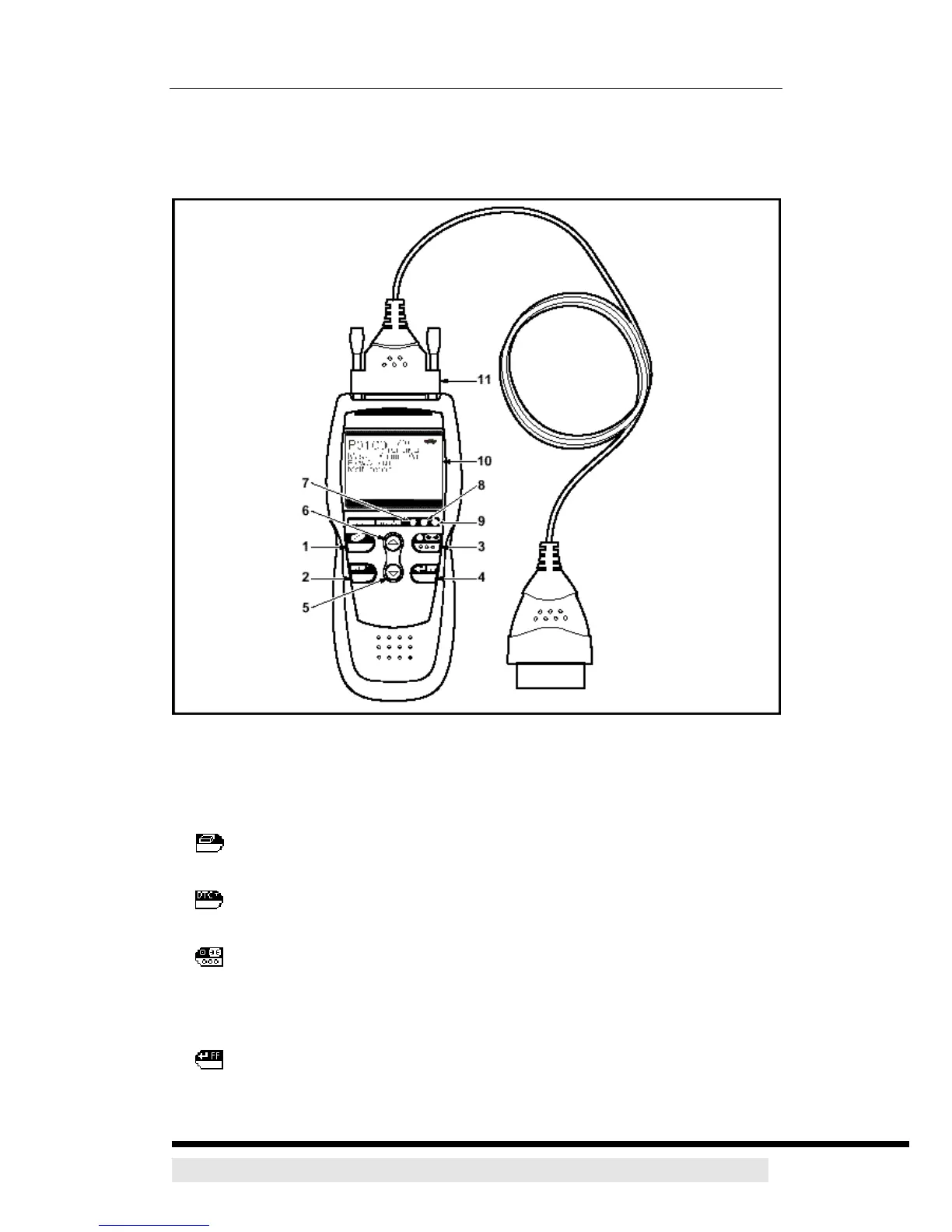 1. ERASE button - Erases Diagnostic Trouble Codes (DTCs), and