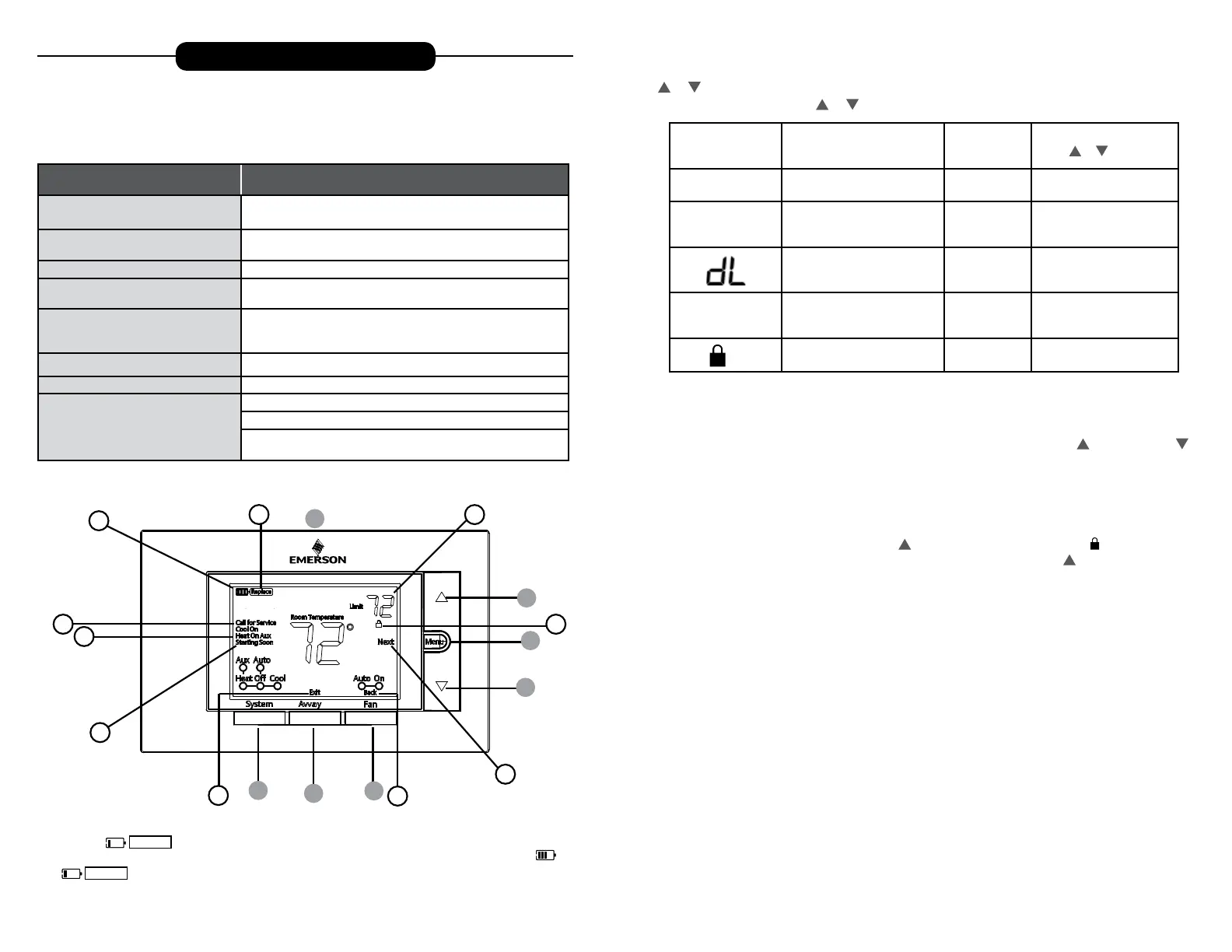 5.) Raises Temperature Setting 12.) Indicates that the system is running in Cool, Heat or Auxiliary