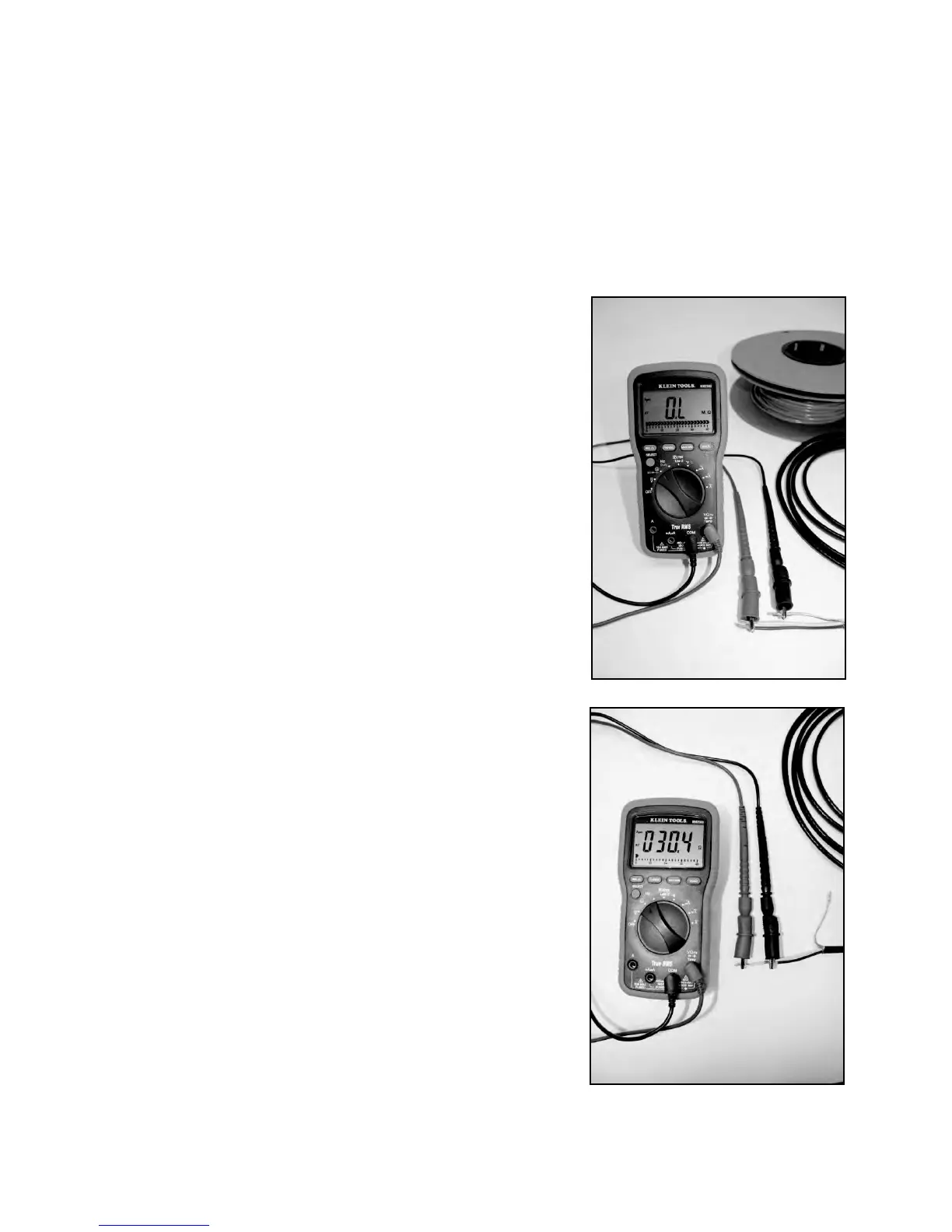 C. The meter should read “OPEN” or “OL”. If you get a different