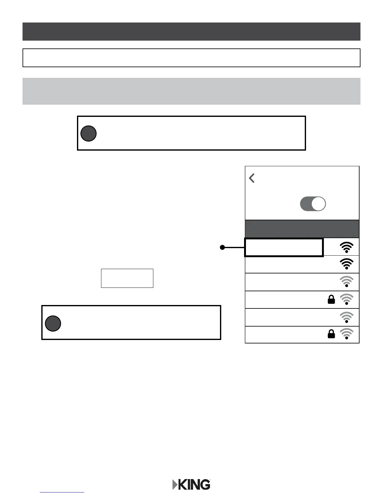 If you do not see KING_XXXXXX_5G (5GHz network), connect to KING_XXXXX (2.4GHz