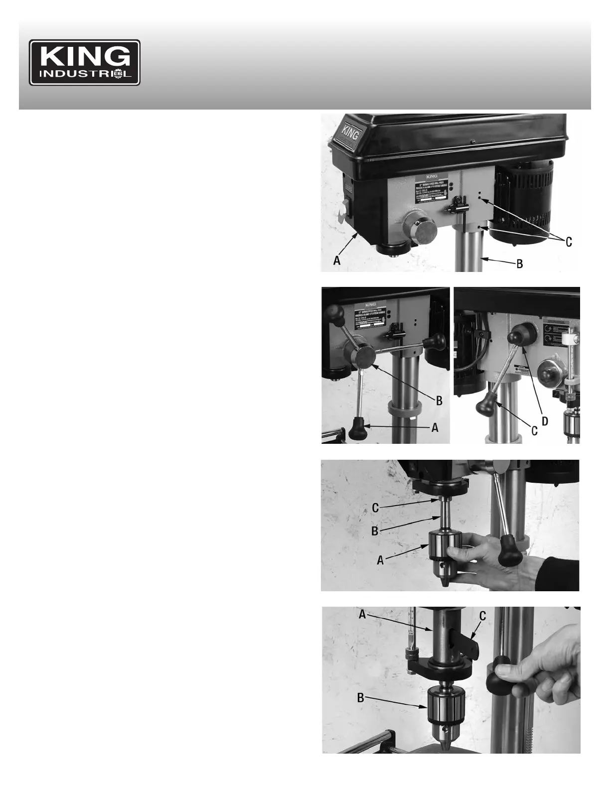 3) Push the chuck and arbor assembly up into the drill spindle (C) as far
