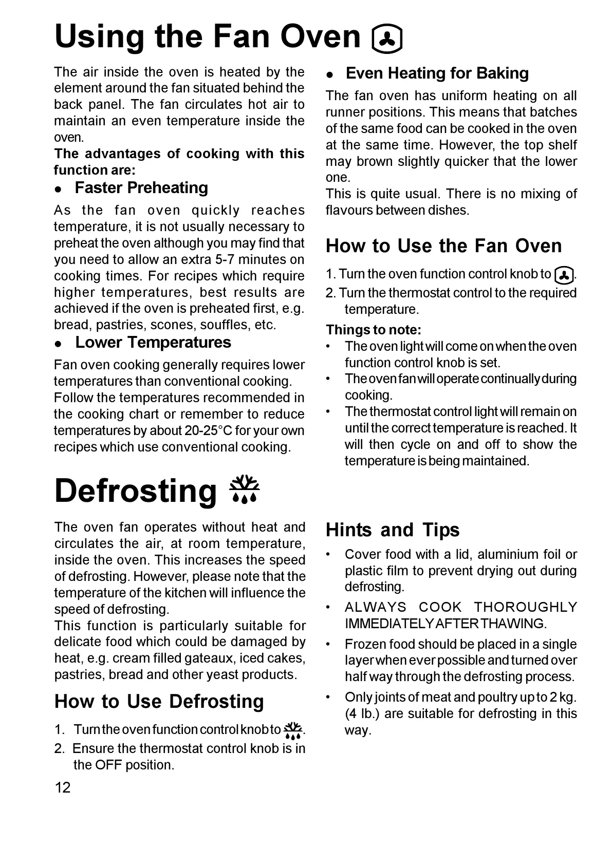Using the Fan Oven