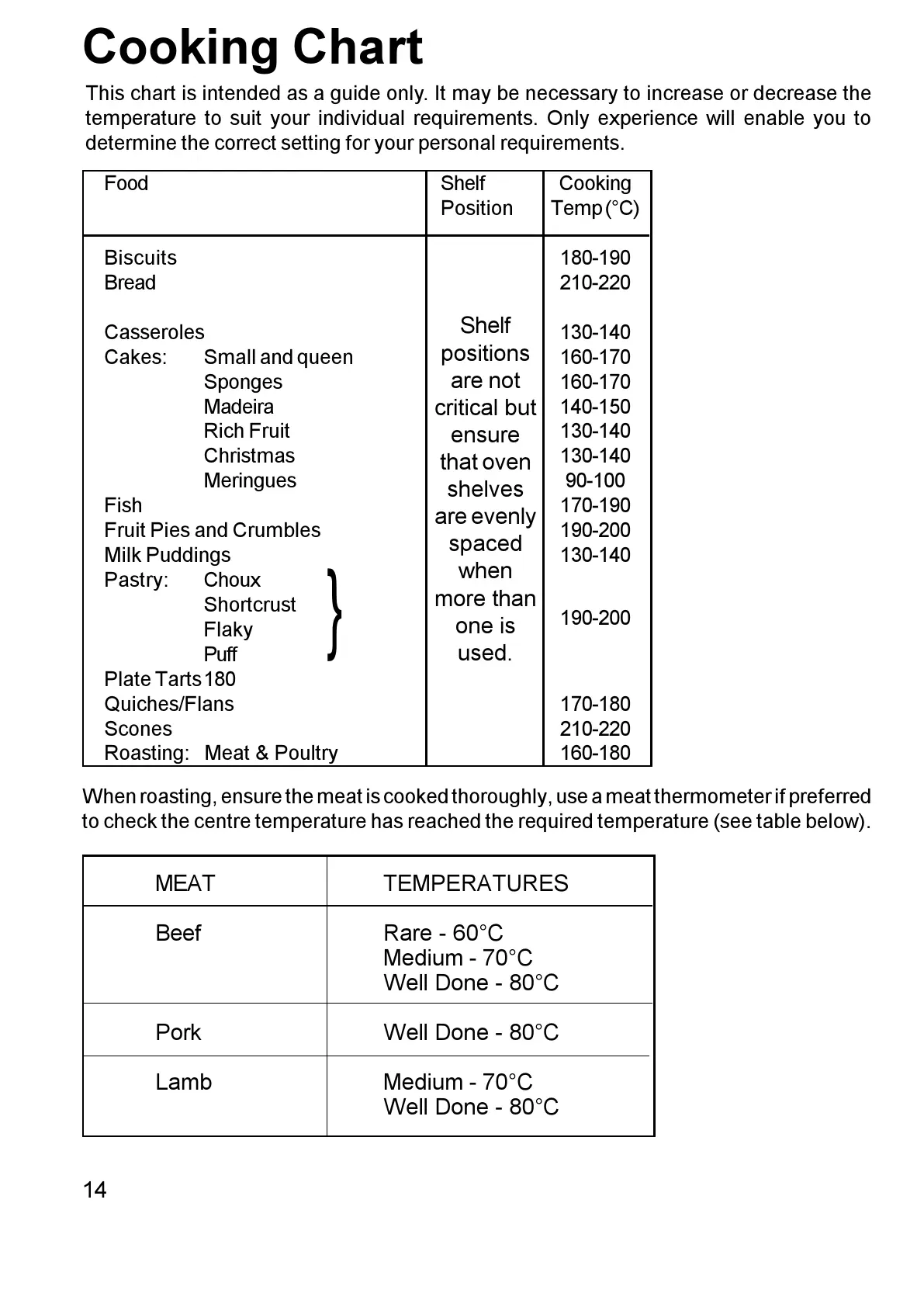 This chart is intended as a guide only. It may be necessary to increase or decrease the