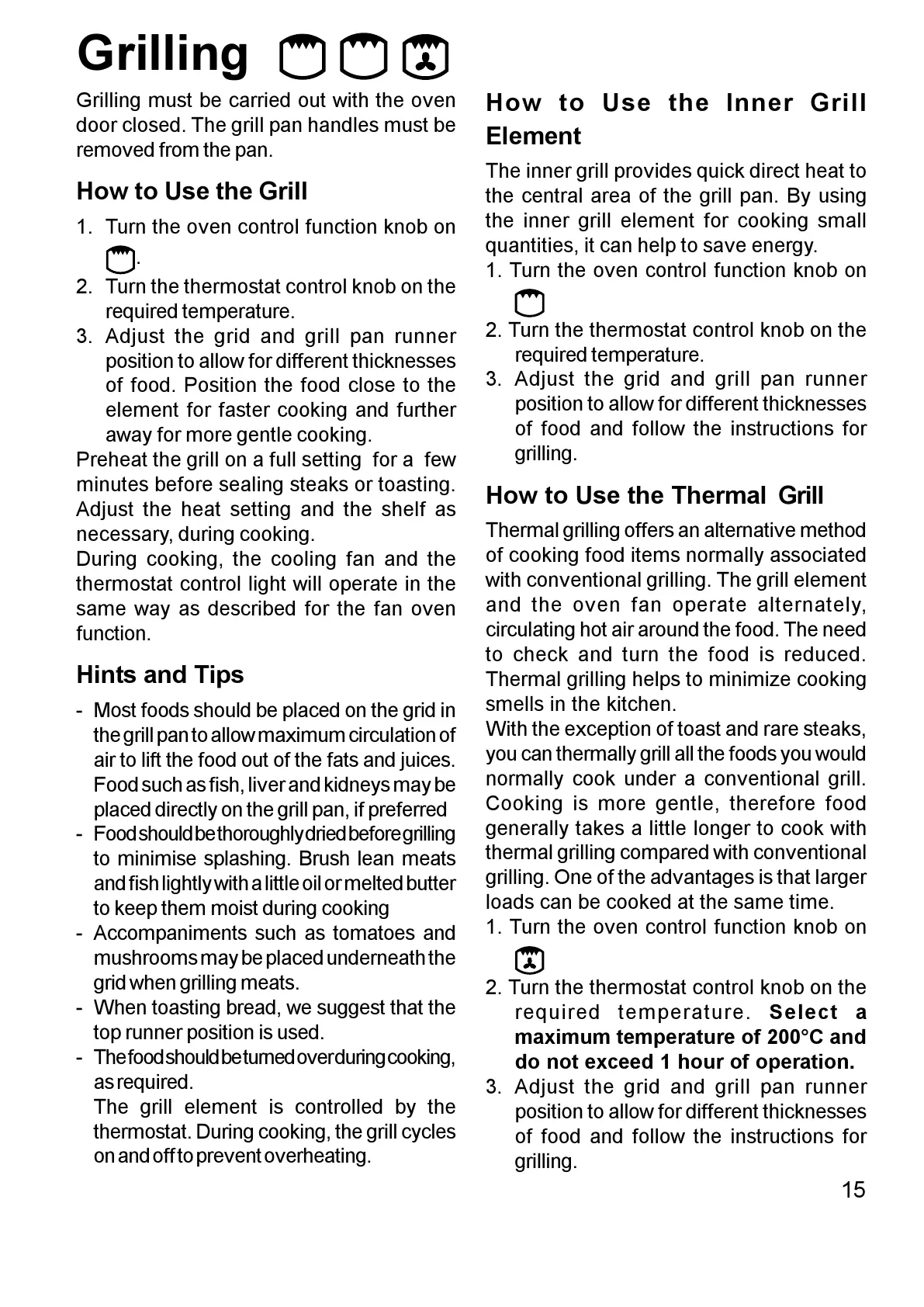 Grilling must be carried out with the oven