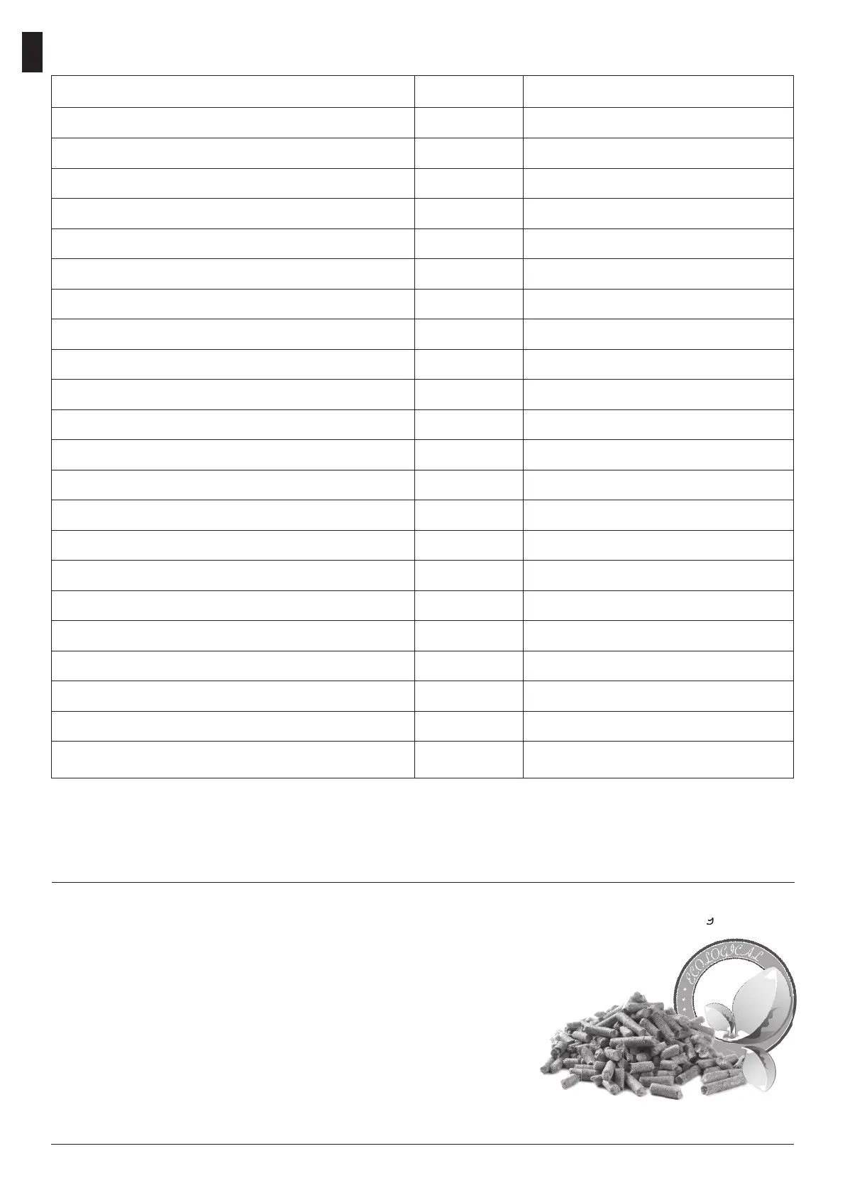 Pellet consumption (min-max) Kg/h 0,7 - 1,4
