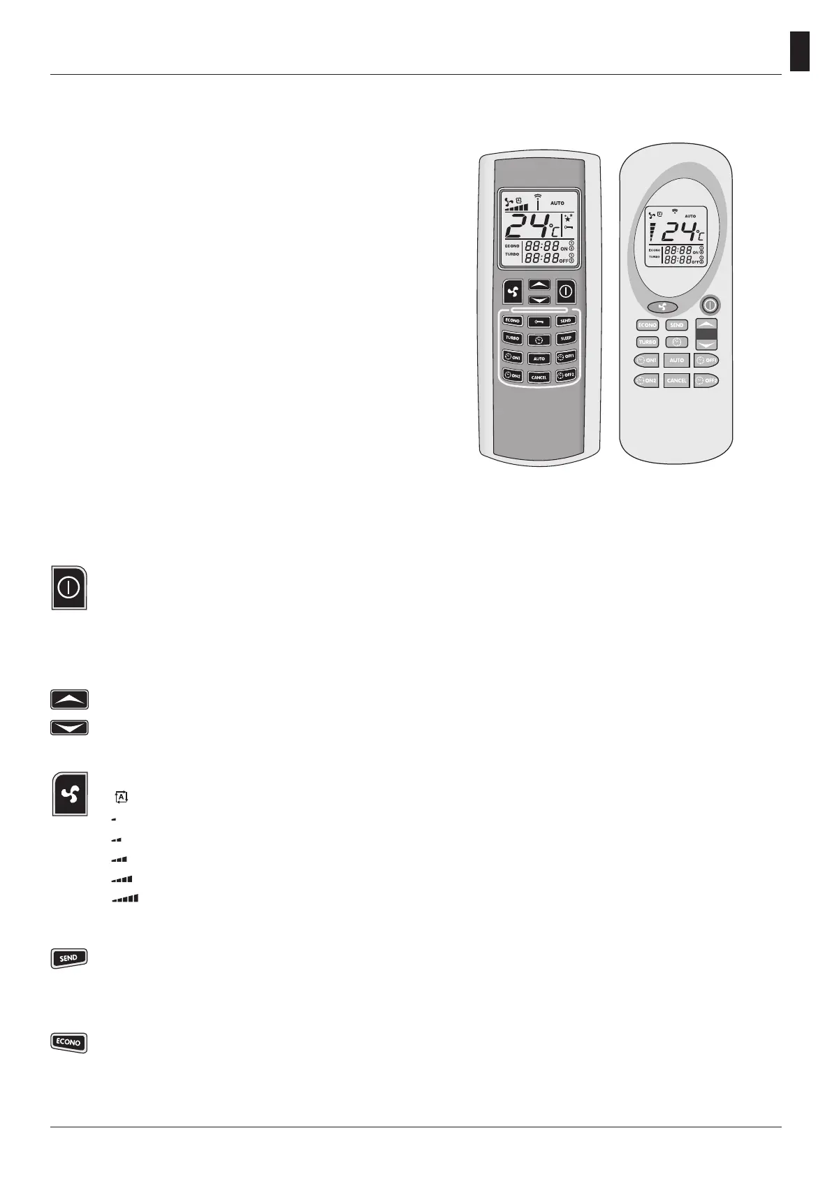 Deze toets activeert of deactiveert de ECONO functie.Houd de toets minstens twee seconden