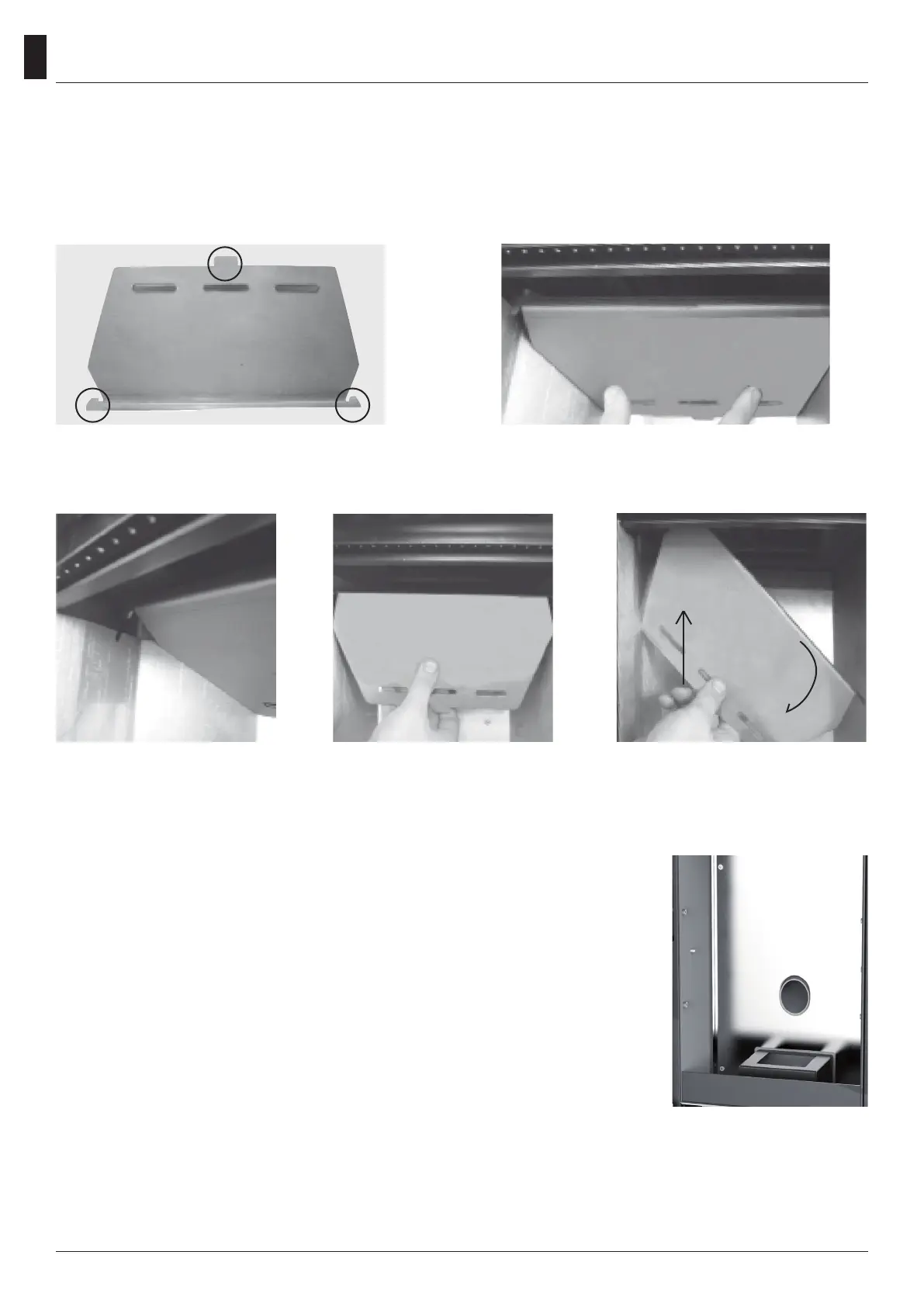installeert u het vuurscherm en zorgt u ervoor dat de 3 ondersteuningshaken zijn correct geplaatst.