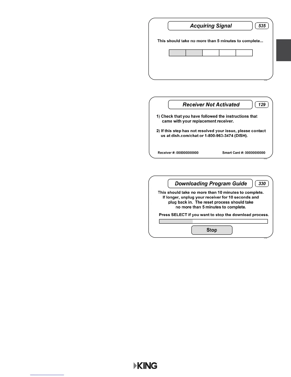 Acquiring Signal message will display.