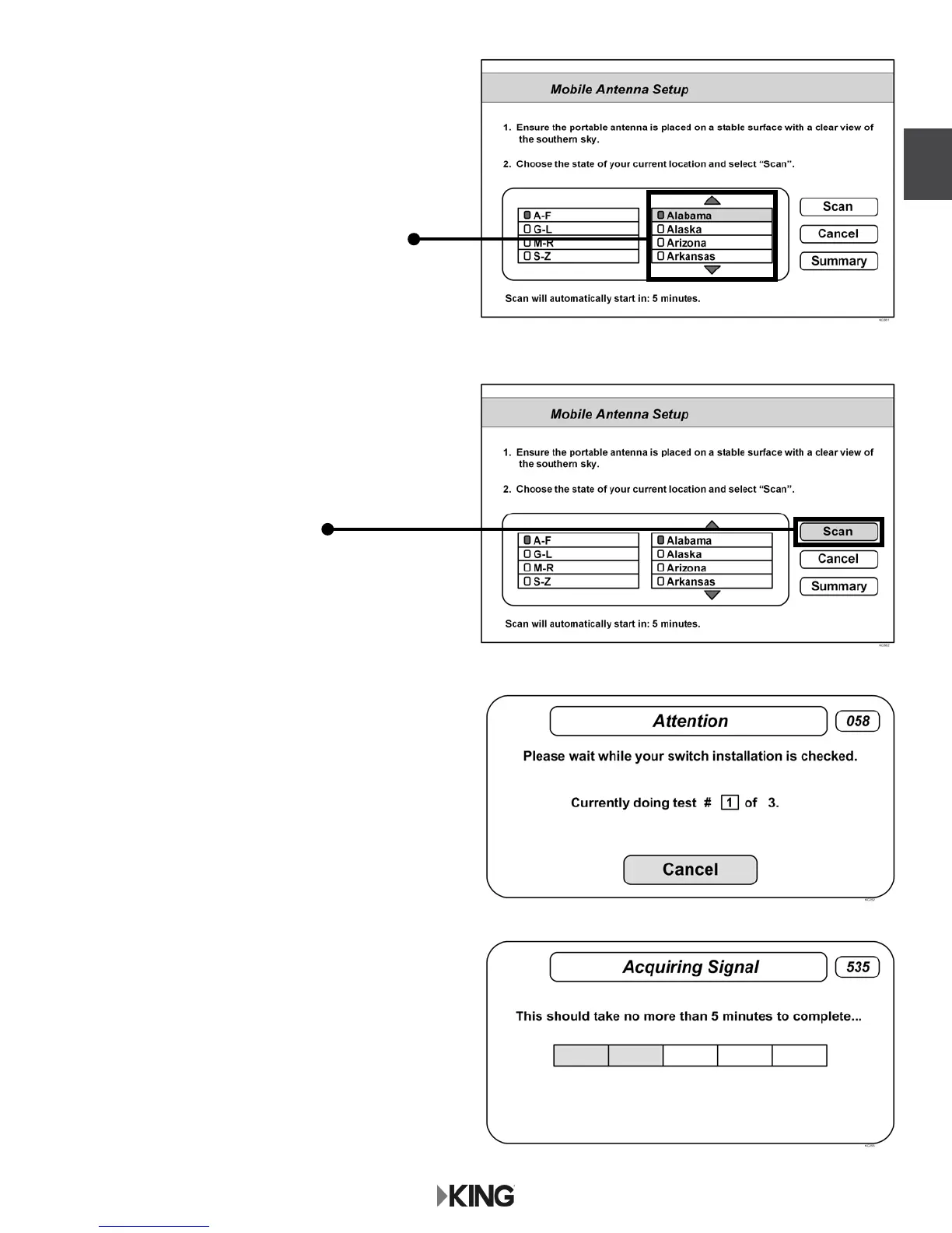 Acquiring Signal message will display.