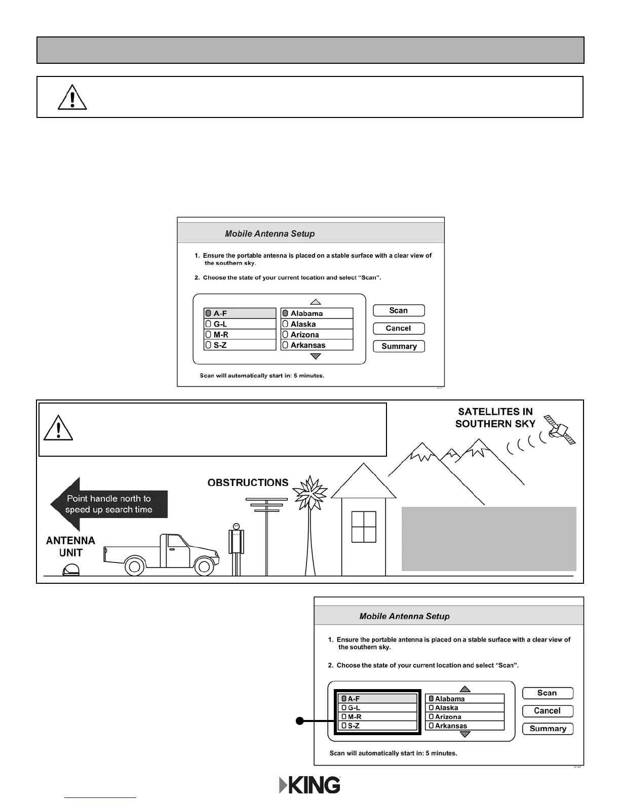 After connecting and turning on your equipment as instructed in KING TAILGATER SETUP, the