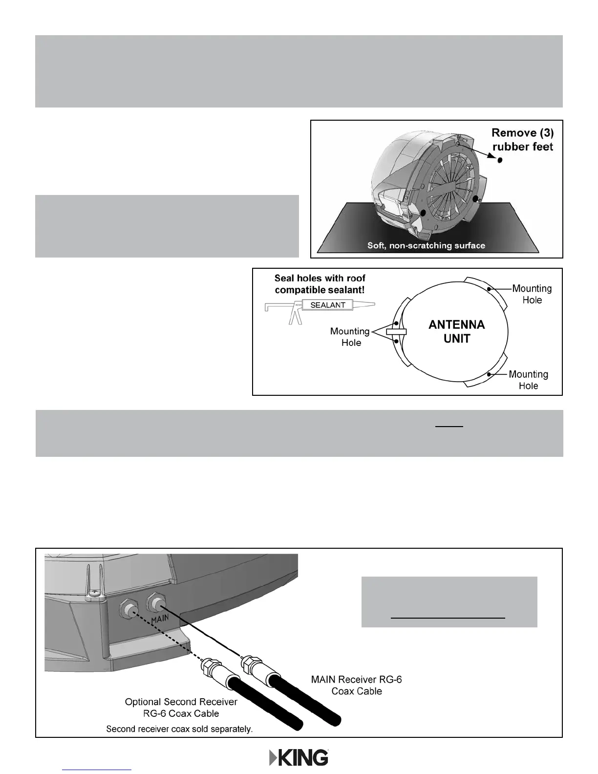 NOTE: There are two coax ports on the back of the antenna unit. The one labeled “MAIN” MUST be connected to the