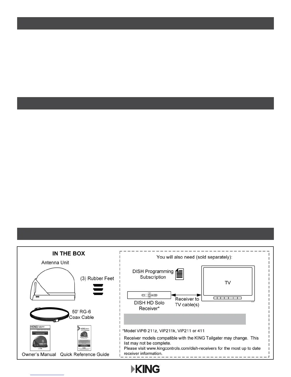 8. To avoid risk of electric shock, unplug your receiver before connecting the KING Tailgater in