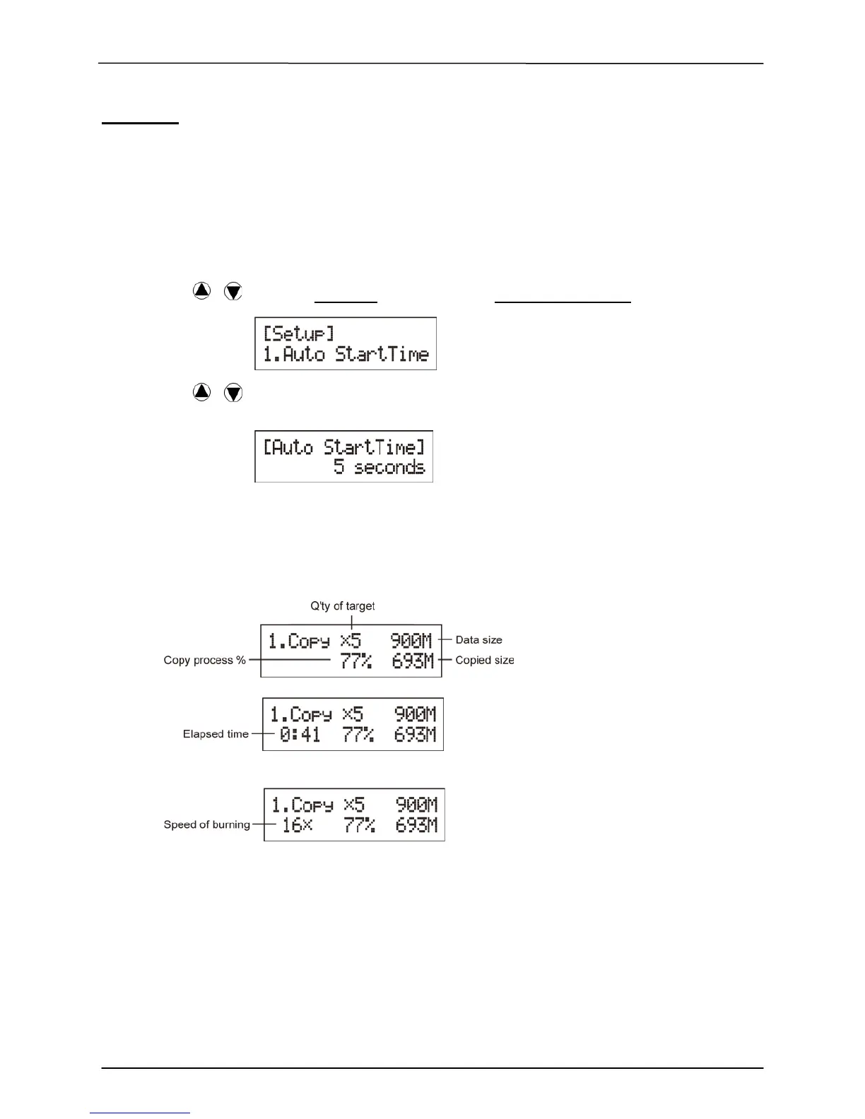 Basic: It will only show the copy process (%) on LCD.