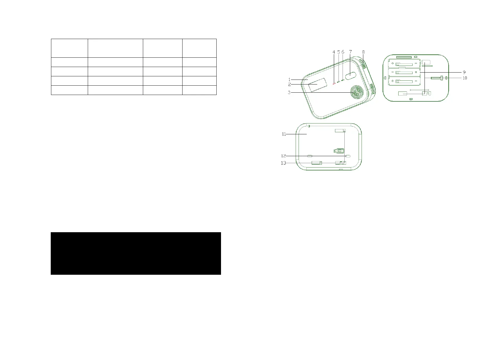 1: CO Alarm. 2: LCD display. 3: Buzzer.