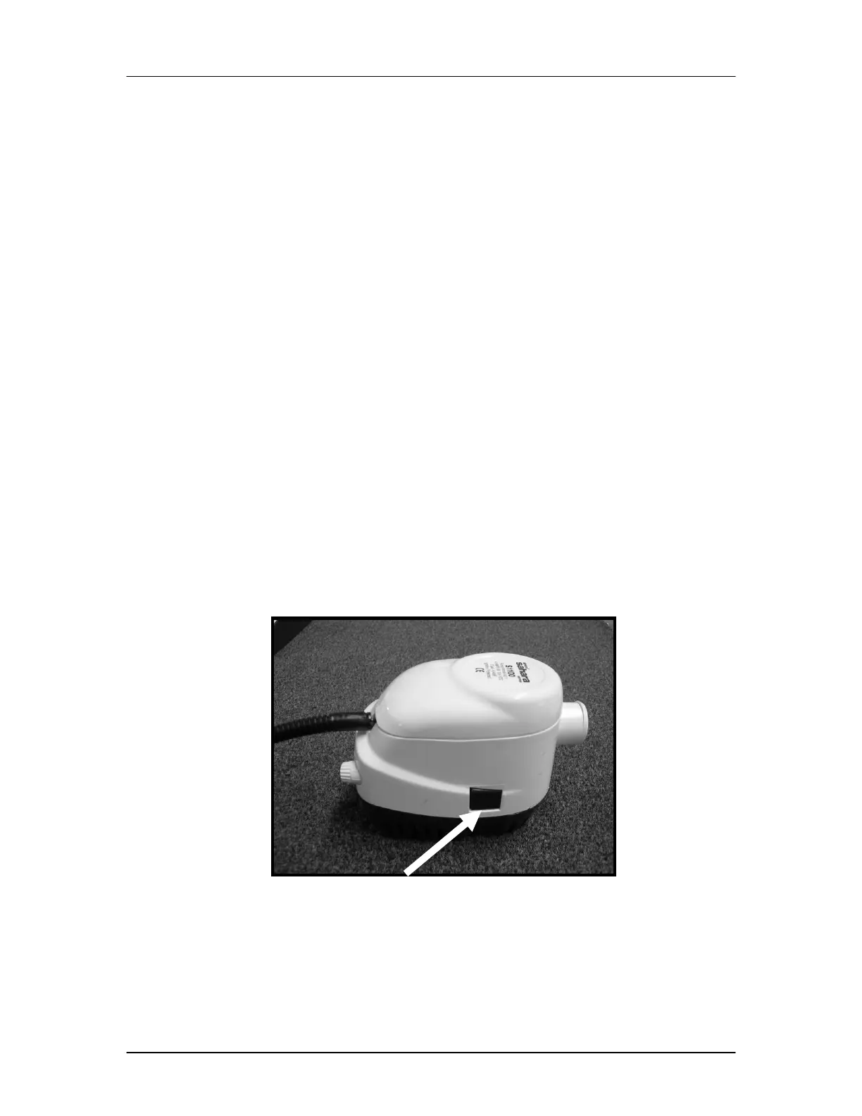 Turn the small knob located on the back of the bilge pump, this lifts up on the float