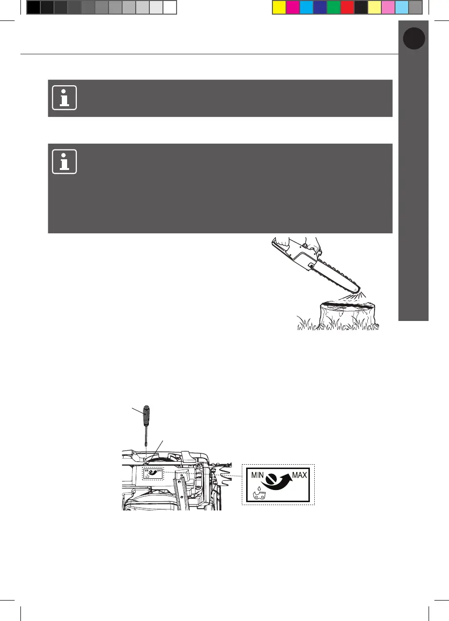 product to adjust the chain oil ow using a supplied screwdriver (32), which is
