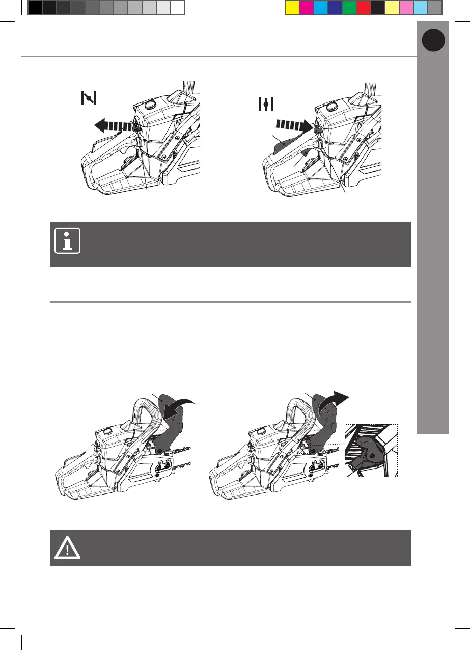 the saw chain is stopped as soon as the chain brake is activated (Fig. 23).