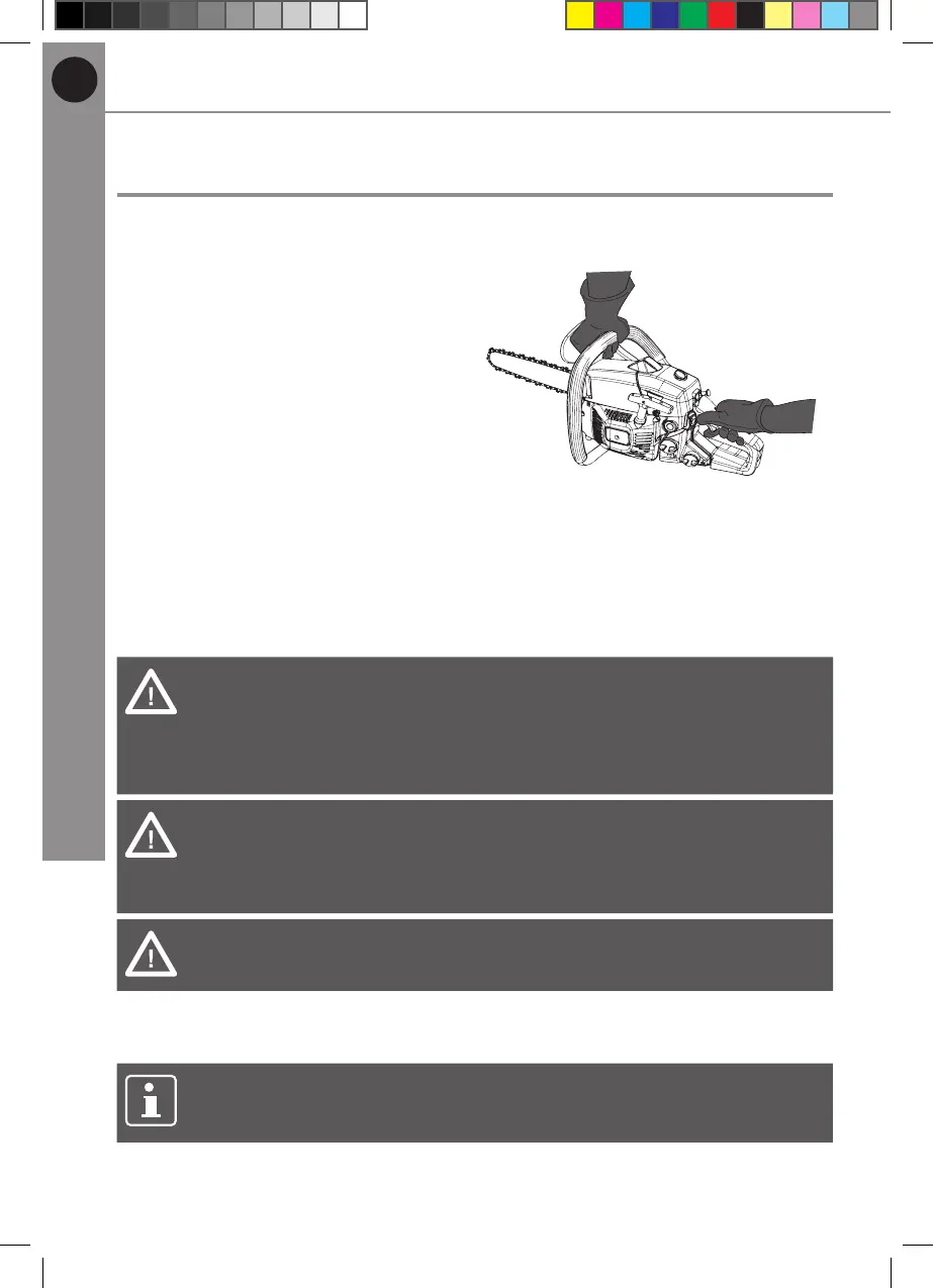 5. While the engine is running, engage the chain brake by rolling your left hand