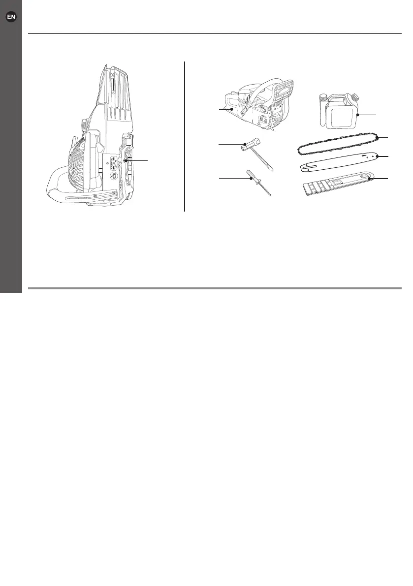 > Machine without guide bar, saw chain and