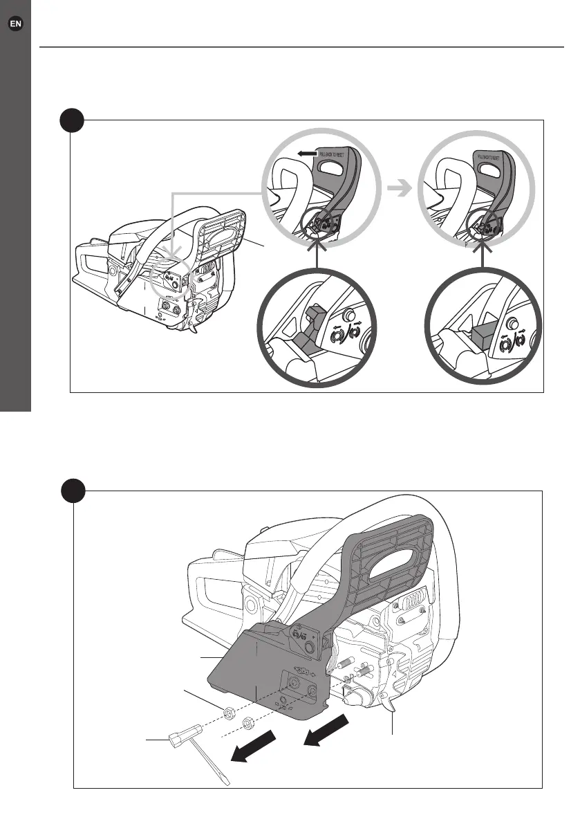 1. Pull the front hand guard (4) backwards to disengage the chain brake (Fig. 1).