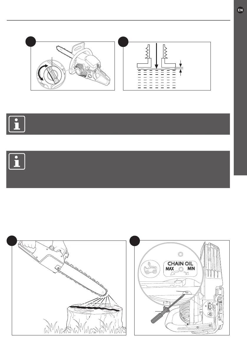 3. Adjust the chain oil ow by turning the chain oil ow adjuster (22) on the bottom of