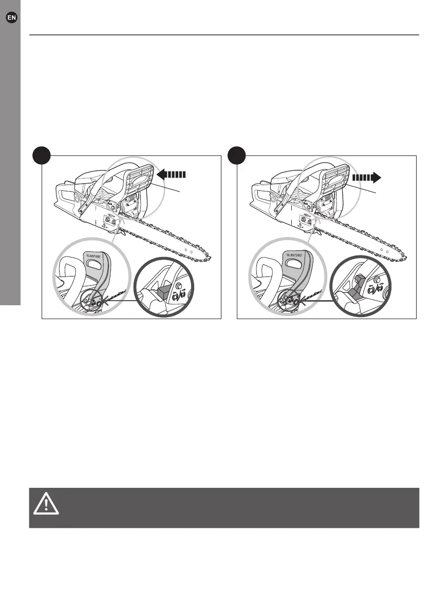 While the engine is running, activate the chain brake by rolling your left hand forward