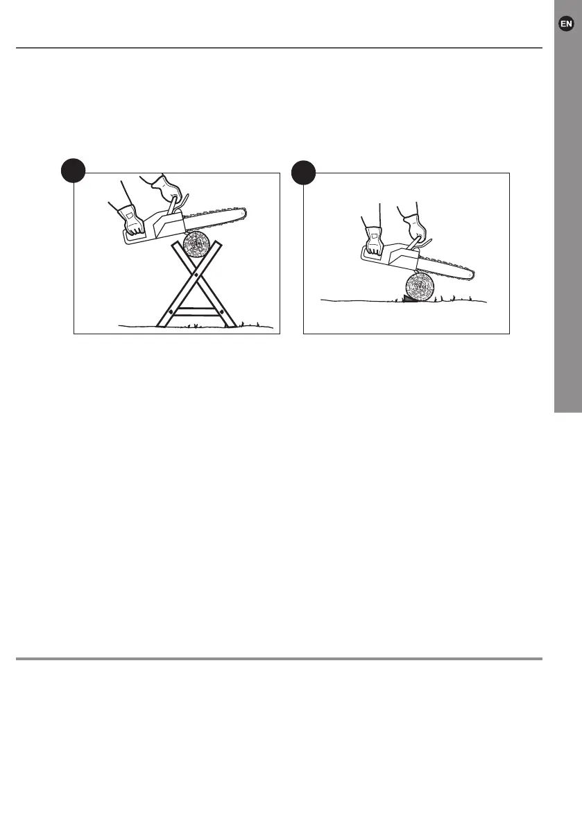saw, the cuts to release the chain saw should always be made on the outside (towards